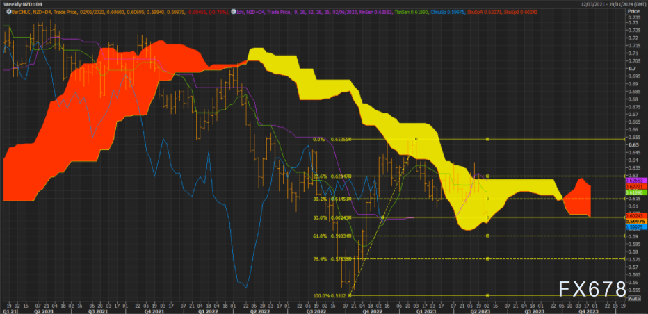 汇通财经APP讯——纽元若跌破周线云区底部,恐将摔个鼻青脸肿;