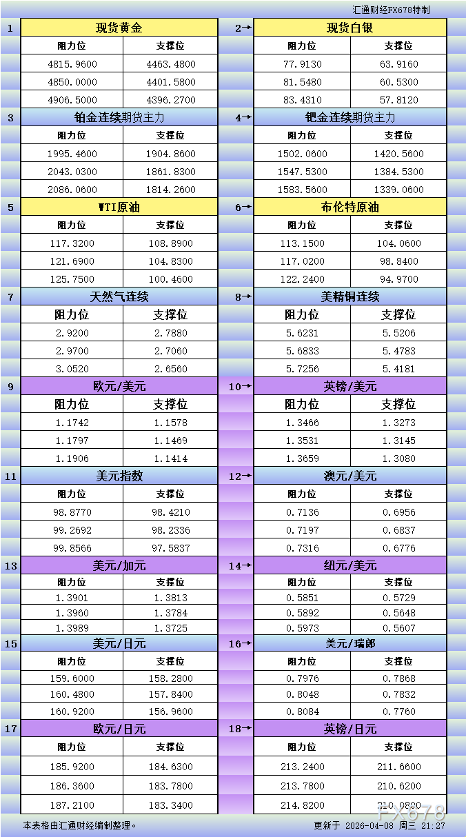展望后续走势,美元指数的方向将主要取决于两大关键条件:其一,此次停火协议能否持续生效,中东地缘冲突是否会再次升温;其二,后续美国通胀数据(尤其是即将公布的CPI数据)是否会呈现回落态势。若这两大条件均满足——停火持续且通胀降温,美元指数或有望进一步下探;反之,一旦地缘冲突重启、或通胀数据超预期走强,美元的避险买盘和利差支撑可能快速回归,推动指数再度反弹。